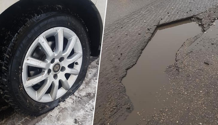 Точно на това място, г-жа Ангелова е спукала и двете гуми на своя автомобил. Пострадалата шофьорка е извикала полиция да и направят протокол и възнамерява да подаде жалба в Община Русе.