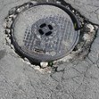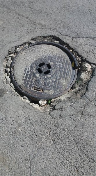 Асфалтът около нея е изкъртен и рискът от пропадане е огромен.