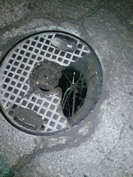 Уважаеми г-н Кмете, спешно се разпоредете да бъде сменен капака на шахтата на пътното платно в близост до стоянката на такситата на улица "Захари Стоянов".