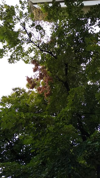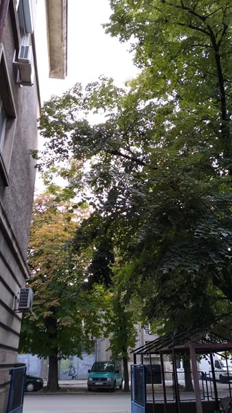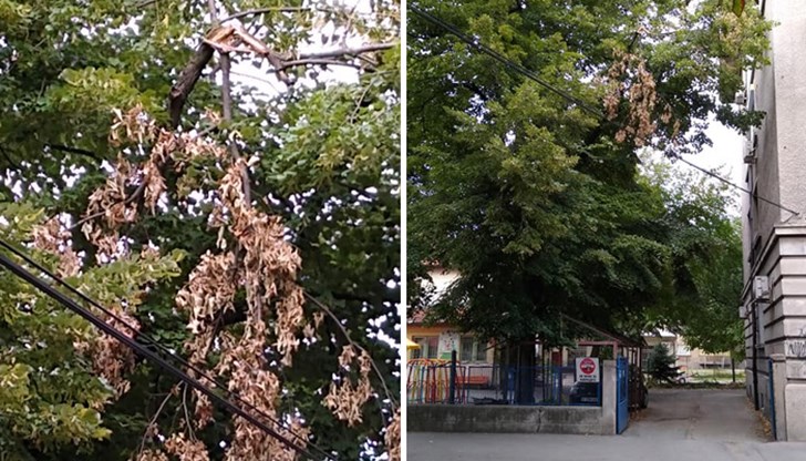 Опасни клони висят от дървета в двора на ЦДГ "Радост" в Русе.