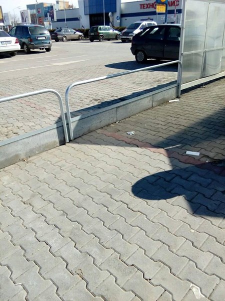 Намират се на няколко места на паркинга на магазин Кауфланд. Едно дори леко подпиране или не дай Боже облягане - и почти сигурно падаш заедно с гениалната конструкция, която даже дете може да събори с една ръка.