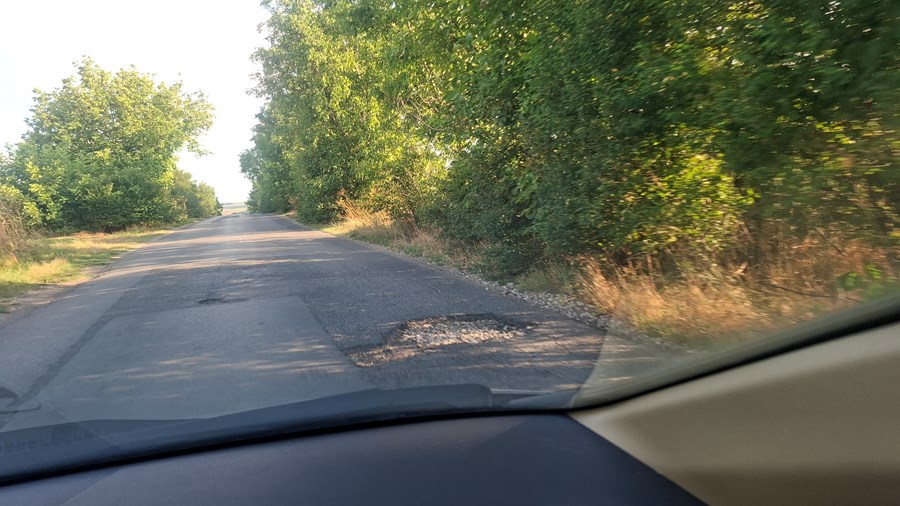 По думите му участък от няколко стотин метра е "изключително опасен", като две от ямите "заемат половината от пътното платно". Според сигнала при срещане с друг автомобил "може да се избиете", а на места "липсват цели парчета от края на пътя", което принуждава шофьорите да карат в насрещното движение.