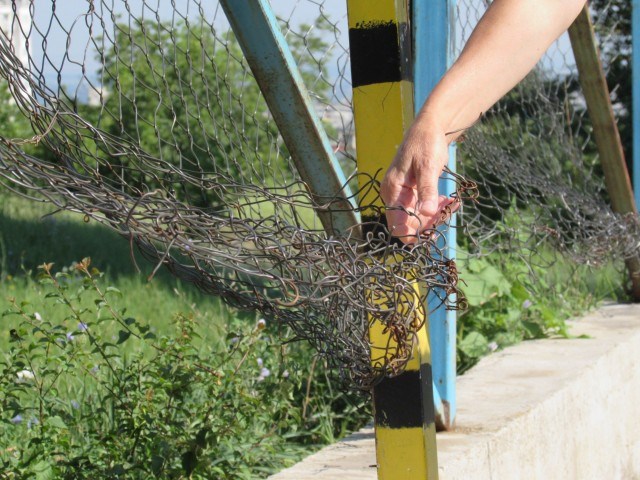 Стърчаща тел, разплетени мрежи, увиснало на два болта баскетболно табло и подпряна с тухли футболна врата – така изглежда игрището, често посещавано от децата от квартала, предаде БТВ.