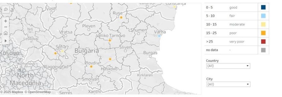 Подобна е ситуацията и в други големи български градове като София, Пловдив и Димитровград. В столицата официалните данни на Столичната община показват, че стойностите са над допустимите 50 микрограма на кубичен метър.