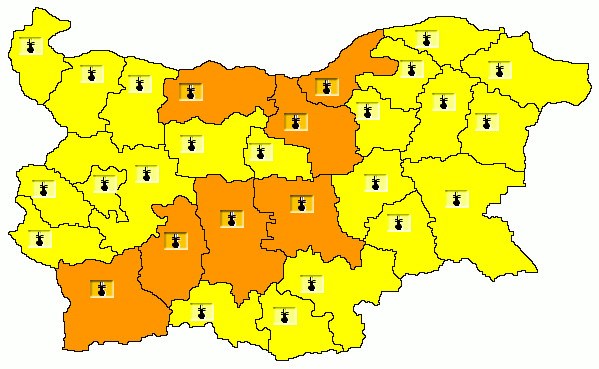 В Плевен, Велико Търново, Русе, Стара Загора, Пловдив, Пазарджик и Благоевград е в сила оранжев код. Там е възможно температурите да достигнат до 39-40 градуса. В останалата част от страната е обявен жълт код и очаквани температури 35-38 градуса, сочат данните от НИМХ.