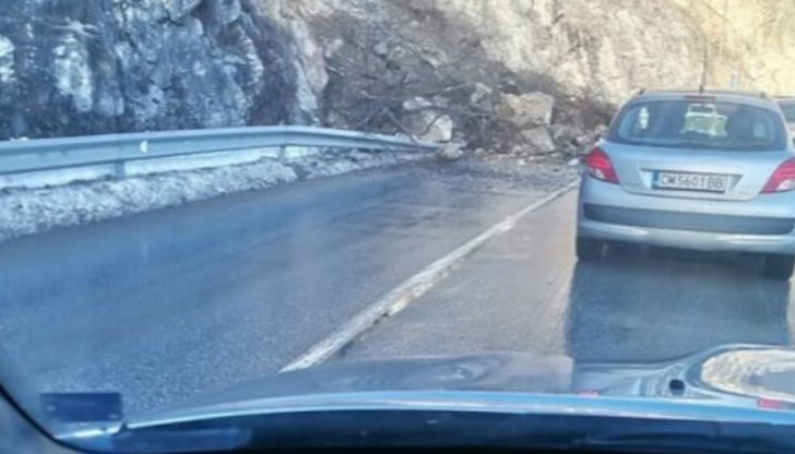 Екипи на пътноподдържащата фирма вече работят по разчистването на пътното платно, като движението се осъществява с временни ограничения и пропускателен режим.
