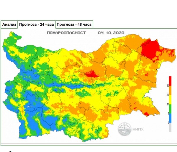 Екстремален индекс за пожароопасност е в сила за територии от 6 области в страната за 4 октомври.