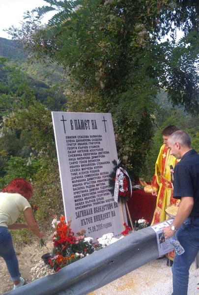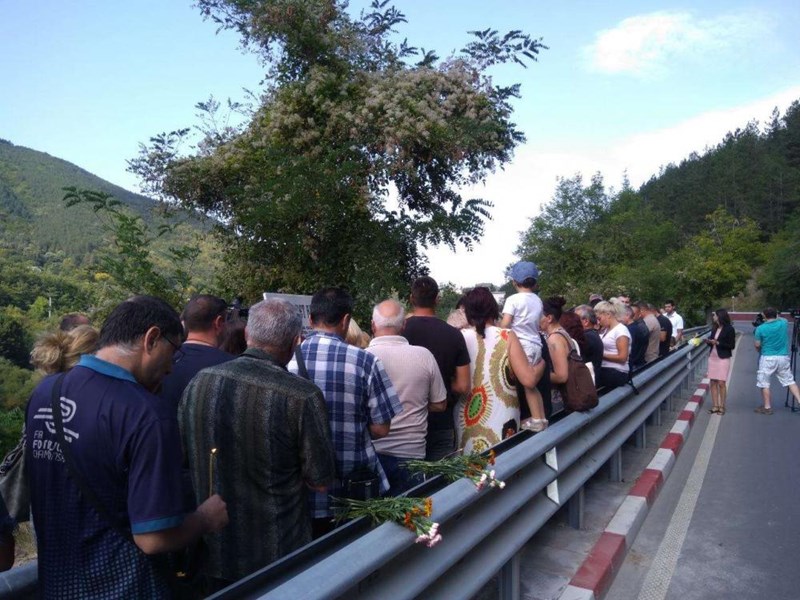 Една година след тежката катастрофа с автобус, отнела живота на 20 души, десетки близки и роднини на жертвите се събраха на фаталната отсечка от пътя за Своге.