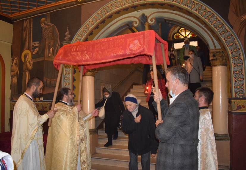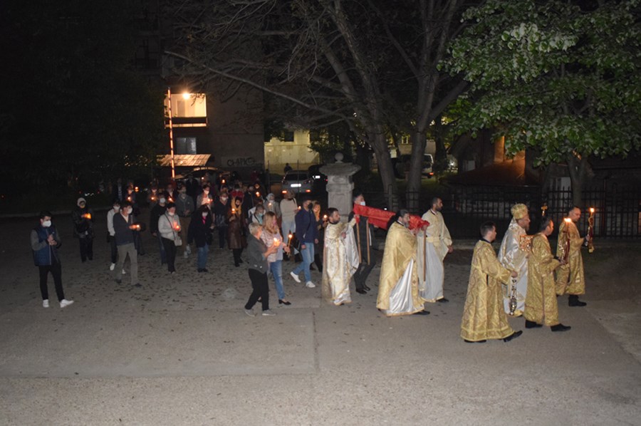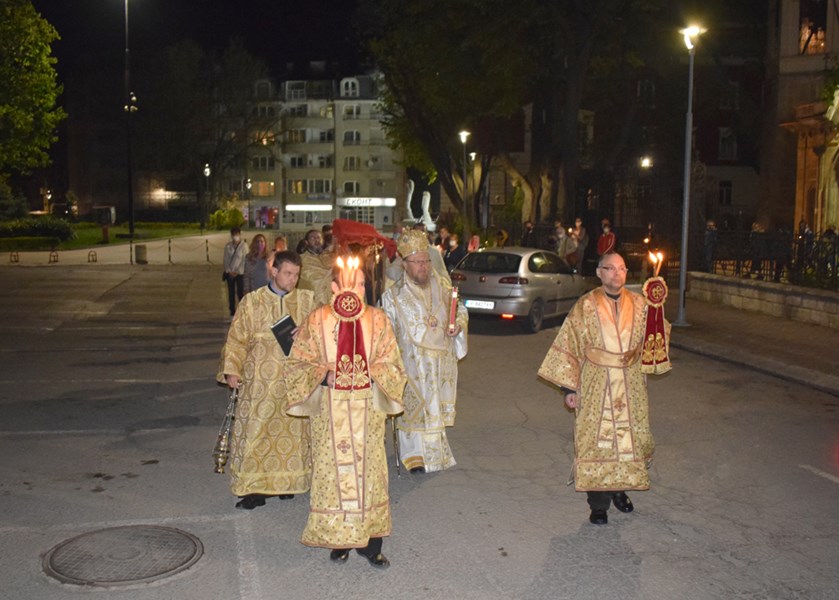 На архиерея съслужиха: иконом Алеко Рачев, председател на храма, прот. Светослав Анчев, свещ. Недялко Димитров и дякон Росен Георгиев. Вслушали се в призива на епархийския архиерей да останат по домовете си, в храма присъстваха малцина богомолци, които се включиха в литийното шествие със св. Плащаница около храма, съобщиха от Русенската митрополия.