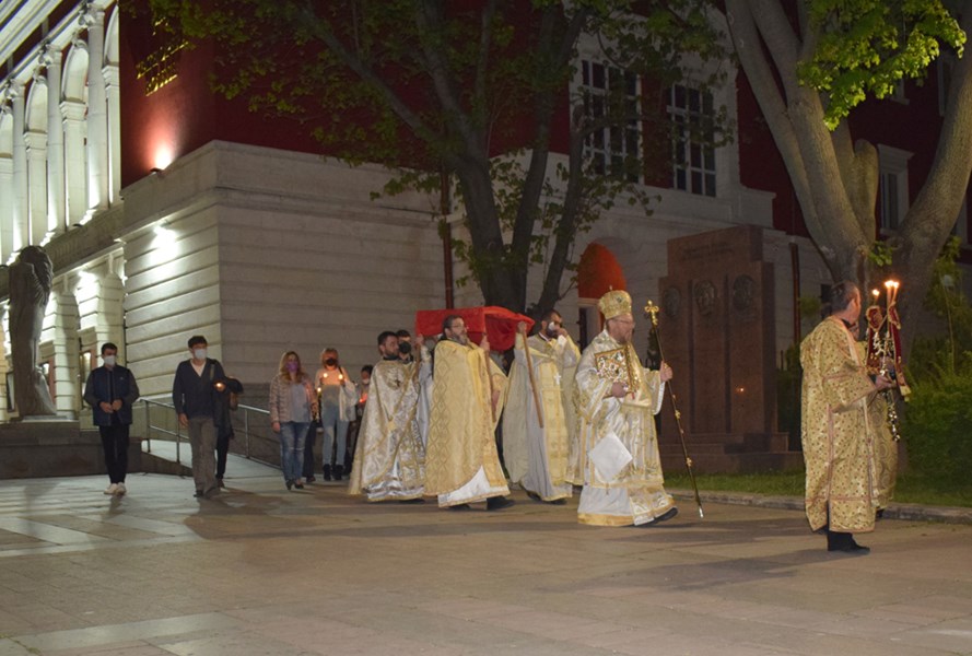 Негово Високопреосвещенство произнесе вдъхновено слово, в което припомни себежертвената Христова смърт на разпятието, Неговото погребение и трепетното очакване на Спасителното Му възкресение за спасението на човешкия род.