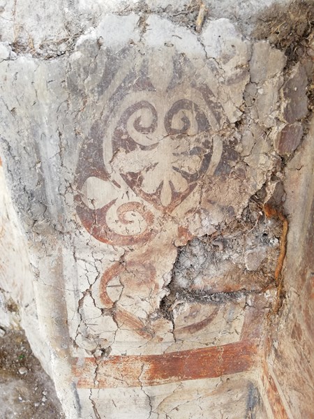 С цялостното разкриване на църковната постройка се попадна на запазен живописен слой по стените на храма. Съхранените стенописни фрагменти представляват рисувана драперия и частично запазена сцена с фигури на светци-войни. Площта им възлиза на около 12 m2. Върху стените на храма се съхранени на място фрагменти от стенописи, които са допълнително укрепени и защитени под изградено защитно покритие.