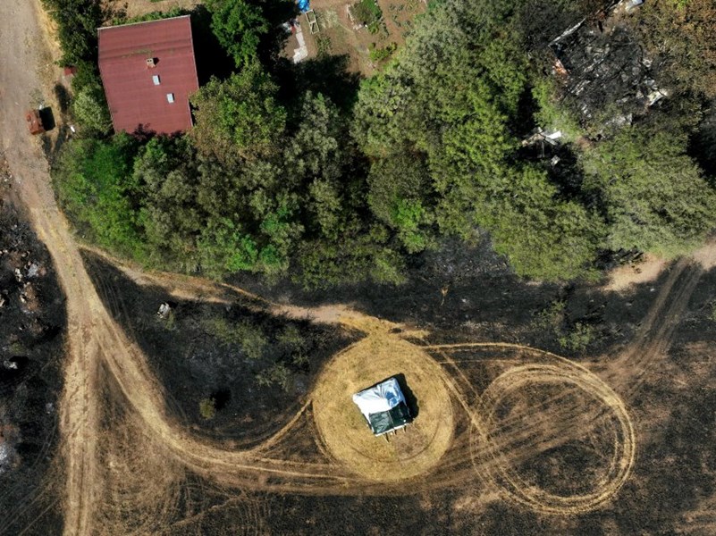 Изглед от птичи полет разкрива истинските мащаби на опустошението, което нанесе големият пожар в селата Безден и Богьовци, община Костинброд. Снимки с дрон показват зловещата картина на изпепелените площи и унищожените имоти след огнената стихия, която бушуваше в продължение на дни.
