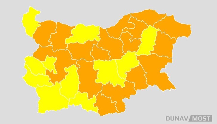Оранжевият код е в сила за областите Монтана, Враца, Ловеч, Габрово, Велико Търново, Русе, Разград, Търговище, Силистра, Добрич, Варна, Бургас, Ямбол, Хасково, Кърджали, Пловдив и Софийска област. За останалите региони на страната е обявен жълт код.