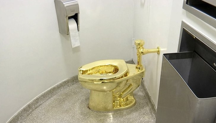 Златната тоалетна, озаглавена "Америка", дело на известния италиански скулптор Маурицио Кателан, е била открадната през септември 2019 година от двореца Бленъм, който се намира в Южна Англия и представлява значима туристическа атракция, включена в списъка на световното културно наследство на ЮНЕСКО.