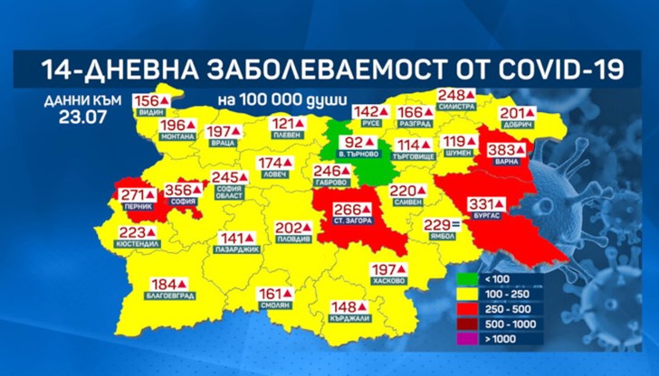 Три от 28-те области днес са с рекордна дневна заболеваемост за последните 14 дни.