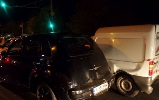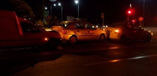 Черен „Крайслер” с бургаска регистрация блъсна, като куршум две полицейски коли на бул. „Тодор Александров” - от кръстовището „Трапезица” към ж.к. „Меден рудник”.