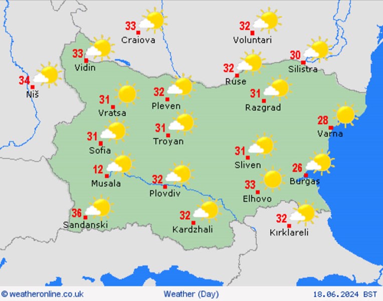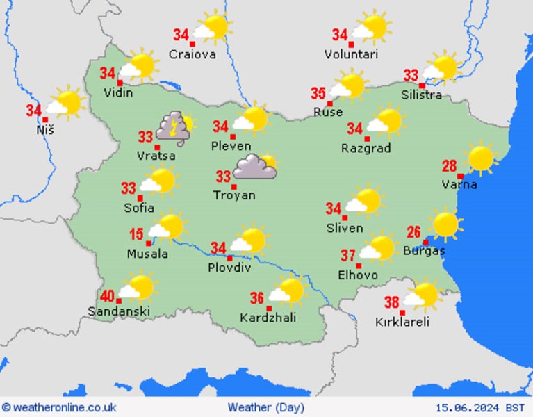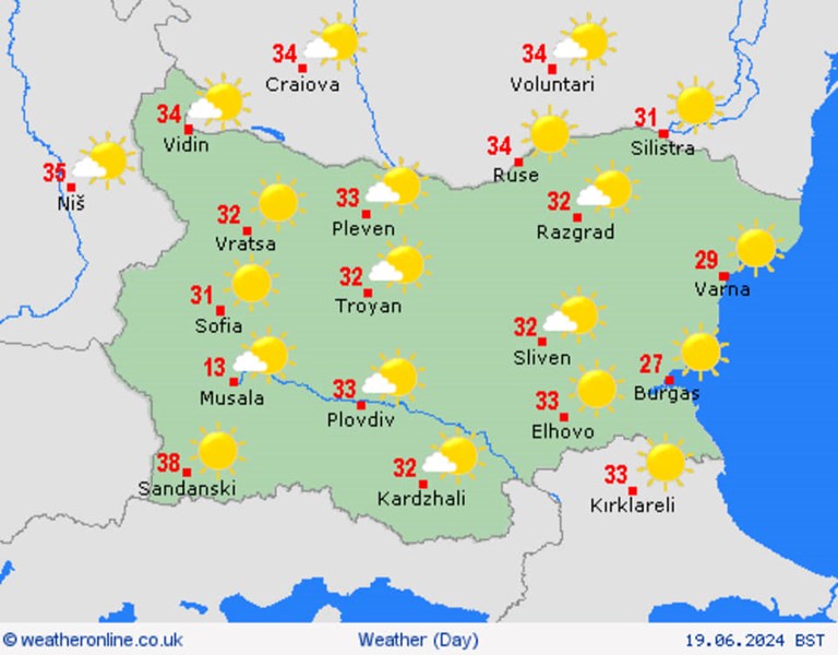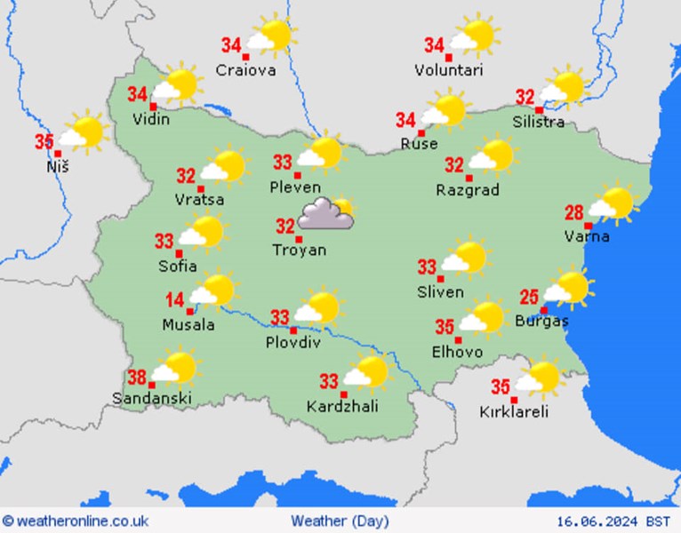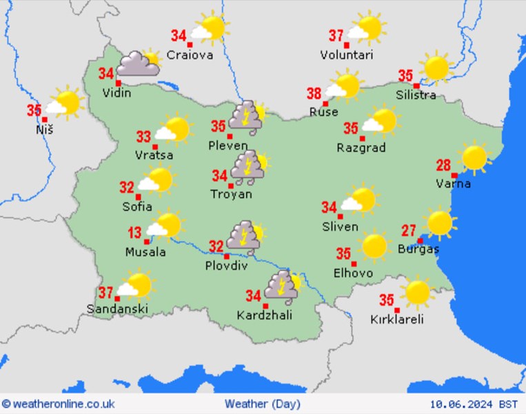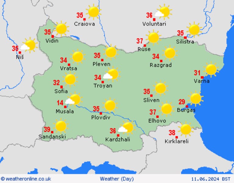 Очаква се горещата вълна да продължи през целия период 10-20 юни, като е възможно да има краткотрайни захлаждания и валежи на отделни места в страната.