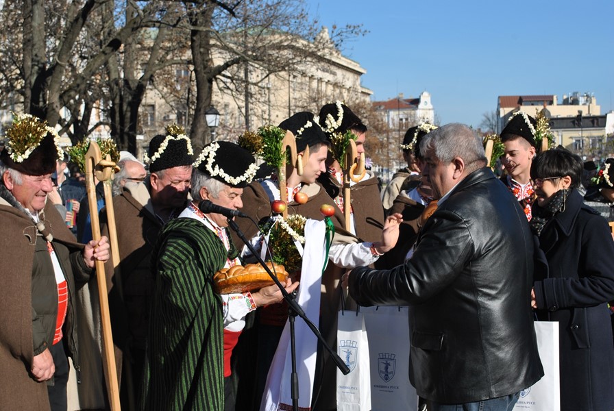 Заместник-кметът на Община Русе г-н Иван Григоров посрещна коледарите и ритуалната Бразая. Под звуците на коледарски песни, Бразаята изпълни своя танц за пречистване на къщата и гонене на злото от дома в навечерието на Рождество Христово.