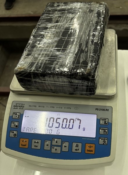 При тестването веществото реагира на кокаин. Общото тегло на иззетия наркотик е 1050,07 грама - малко над килограм чист кокаин.