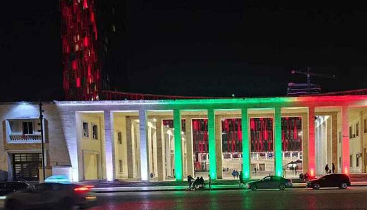 Сгради в албанската столица Тирана бяха осветени в цветовете на българското знаме по повод националния празник на България Трети март, съобщиха от екипа на Посолството ни в Албания, предава БТА.