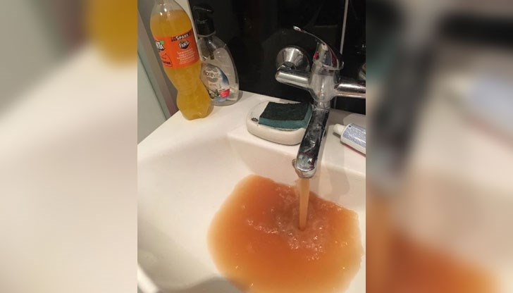 Заради необичайния цвят на водата, жената се е пошегувала, че тече "Фанта". Снимката предизвика бурни реакции в мрежата, а някой от потребителите са коментирали, че при тях тече бира и бяло вино.
