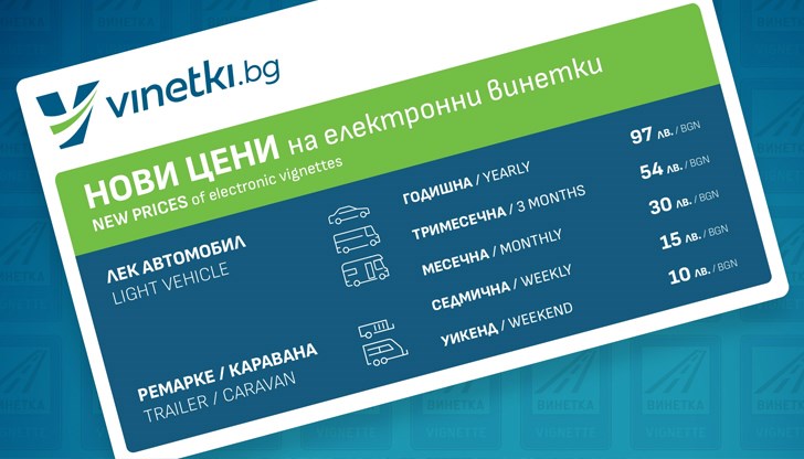 Според новата ценова листа, тримесечната винетка вече е 54 лв. (при досегашна цена от 48 лв.), месечната - 30 лв. (при предишна цена от 27 лв.), а уикенд винетката поскъпва с 1 лев - от 9 на 10 лв.