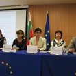 Надежда Дерменджиева, изпълнителна директорка на Български фонд за жените, Жасмина Мирчева, началник на кабинета на министъра на труда и социалната политика, Боряна Манолова, председателка на Съвета на жените в бизнеса в България и главен изпълнителен директор на Siemens България, проф. Румяна Стоилова, директорка на Института за изследване на обществата и знанието при БАН, Гайр Шоберг, изпълняващ длъжността посланик на Кралство Норвегия.