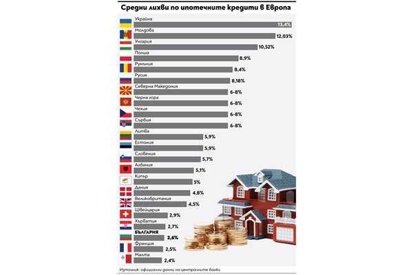 Евтините ипотечни заеми също надуват цените на имотите, предупреждават брокери и финансисти. Според тях запазването на средните лихви устойчиво под 3% в последните години стимулира високото търсене и надутите цени.
