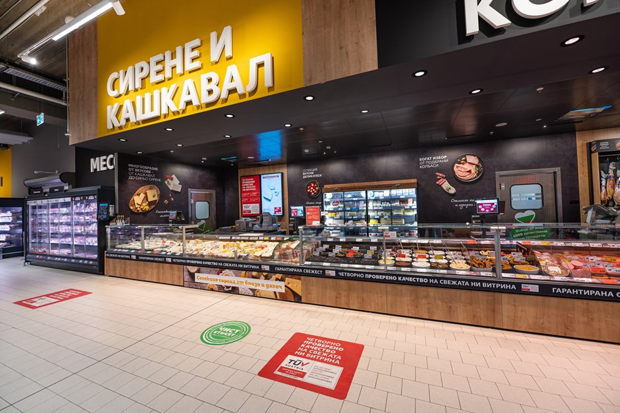 Изобилието от всякакви видове месо и колбаси наистина е впечатляващо. На свежата витрина в Kaufland има над 400 артикула, които ще задоволят и най-претенциозните кулинари. Килограмът на свинската плешка без кост е само за 6,79 лв. за притежателите на Kaufland Card. Може да купите салата „Снежанка“, кьопоолу и черни маслини на половин цена. Предложенията за мезета за коледната трапеза са на доста атрактивни цени, като например Филе „Елена“ с 40% отстъпка. Асортиментът на собствените марки на Kaufland също са с големи отстъпки. От „Брей“, която включва само български стоки, си харесахме кайма смес за 4,99 лв. /кг, кюфтета, кебапчета, карначета и създарма намалени с над 20%. Телешкото мляно месо на „Шеф месар“ е на половин цена за лоялните клиенти. Напомняме, че всички те са с 4-степен контрол на качеството, гарантиран от международниа стандарт TUV Nord. От K-Classic и K-Favourites напазарувахме чоризо, немска шунка и прошуто с над 20% намаление в цената.