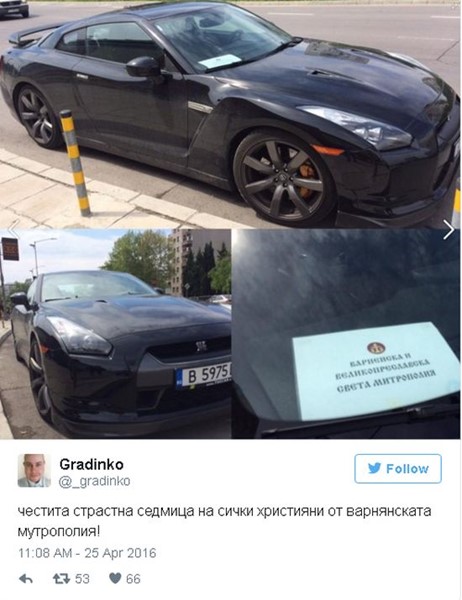 Вдигащият 315 км/ч „Нисан“ GTR с табела на Варненската и Великопреславска митрополия отново се появи на снимки в социалните мрежи, след като преди половин година от епархията се наложи да излизат с официална позиция, че не притежават автомобила, познат от филма „Бързи и яростни”.