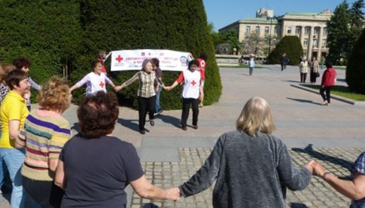 Доброволците на Български Червен кръст – Русе и от Спортен клуб „Дунав – ветерани“ отбелязаха Световния ден на Червения кръст и Червения полумесец с флаш моб със синхронни танци и хора в центъра на града.