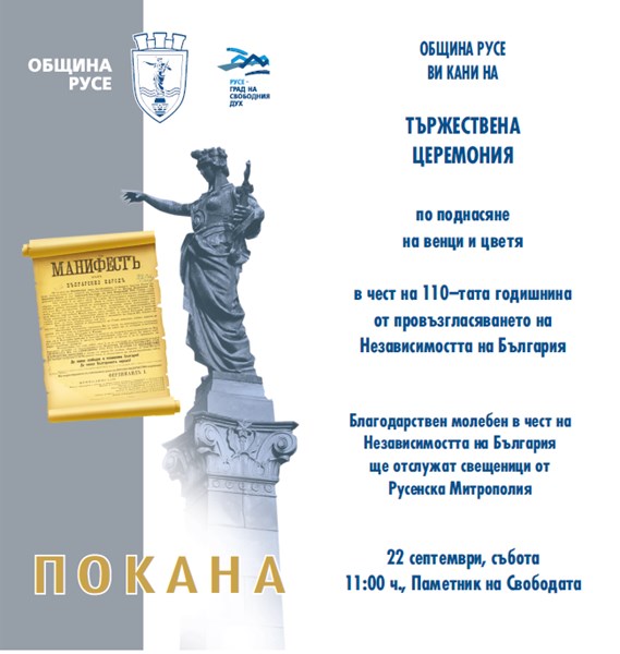 На 22 септември русенци ще отбележат 110-годинишнината от обявяването на Независимостта на България.
