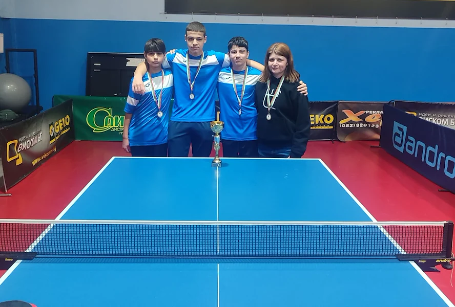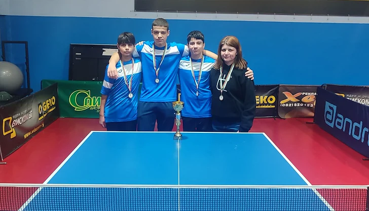 Успехът за гимназията извоюваха четирима ученици, които показаха силен колективен дух край масите за тенис: