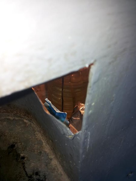 От мястото, където пада чашката се вижда вътре в машината - така успях да вкарам телефона си и да снимам. Как може такова безобразие?! "