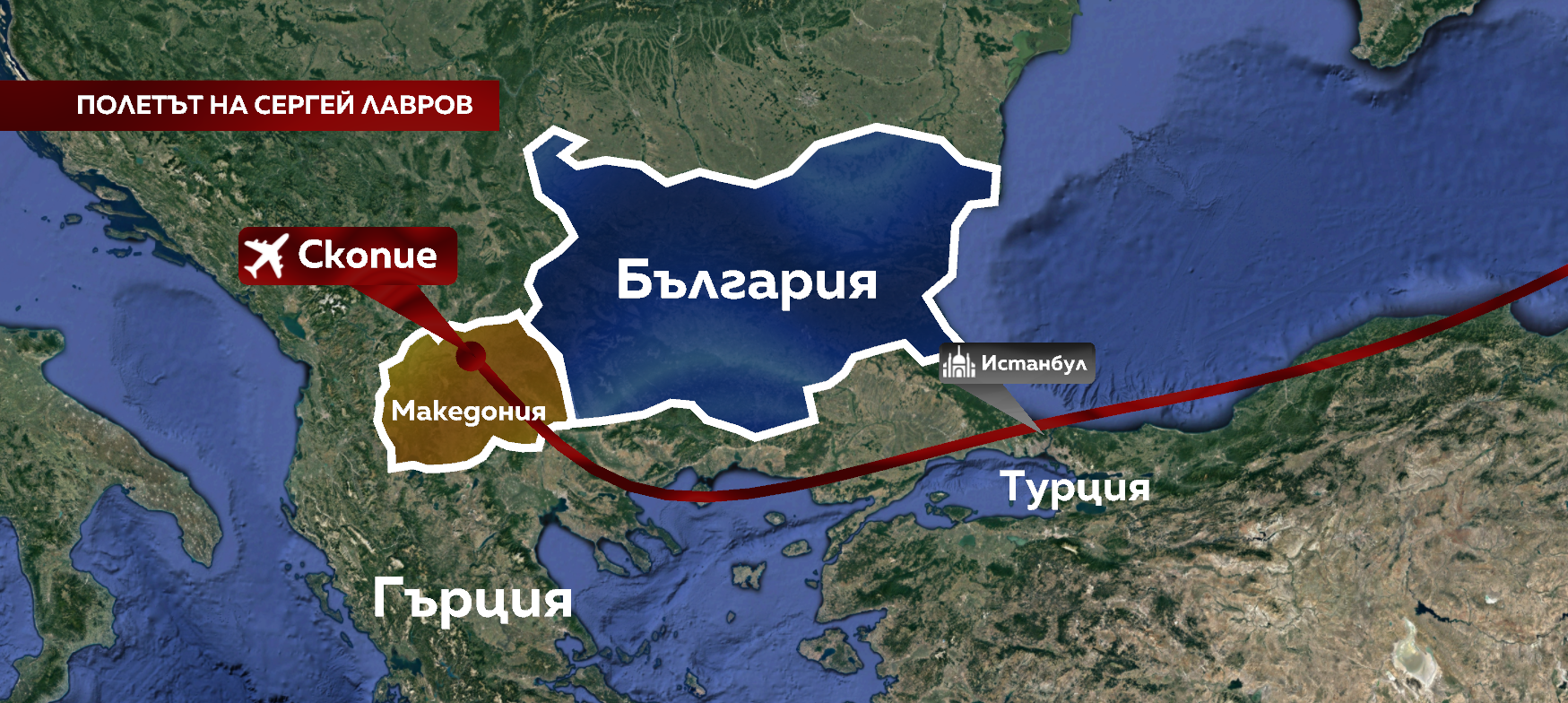 От данните от сайта Flightradar24 се вижда, че самолетът с Лавров е минал през Турция и Гърция, за да стигне до Северна Македония.