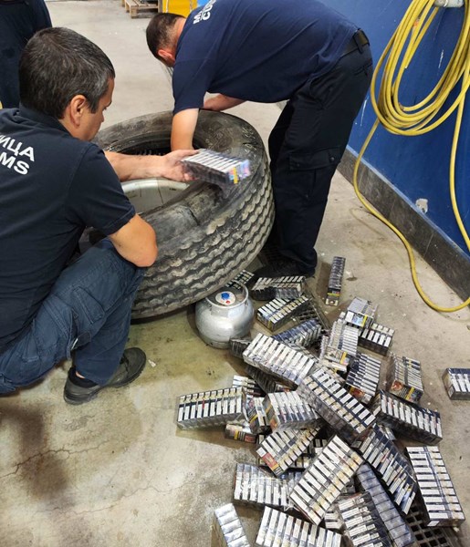 Откриха близо 1500 кутии контрабандни цигари, укрити в гуми на Дунав мост
