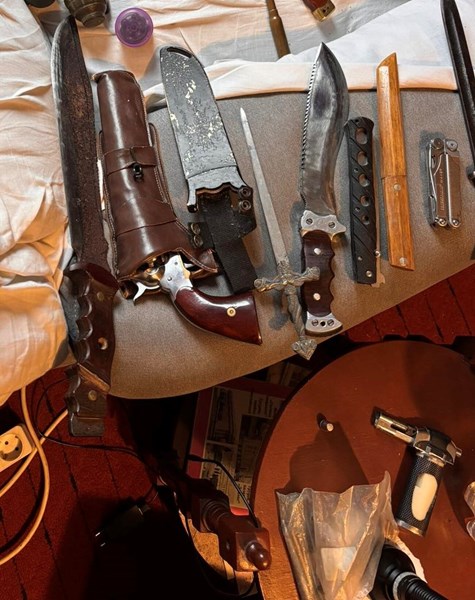 Освен доказателствата за инцидента, полицаите се натъкнали и на цял оръжеен арсенал: