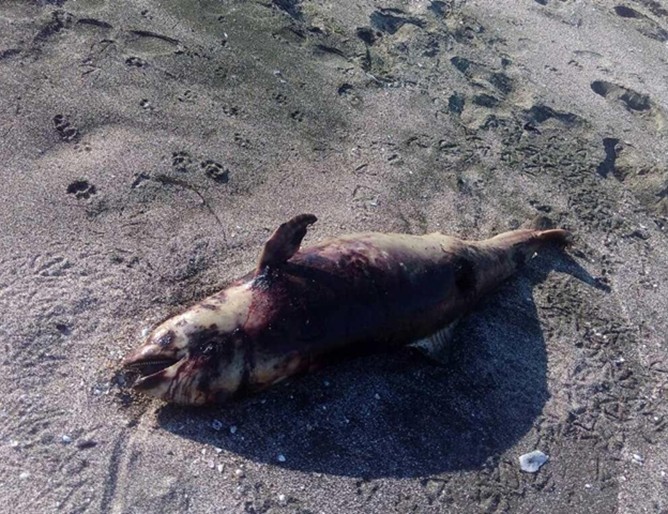 Тялото на делфина е било открито от туристи, които се разхождали по неохраняемата ивица.