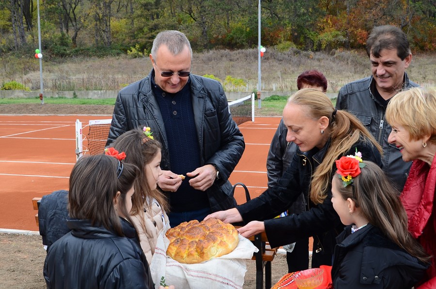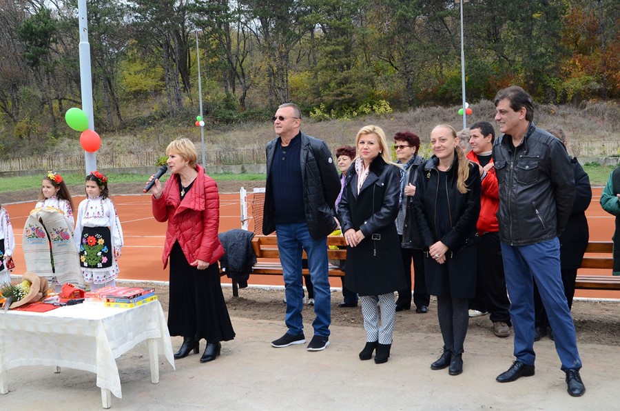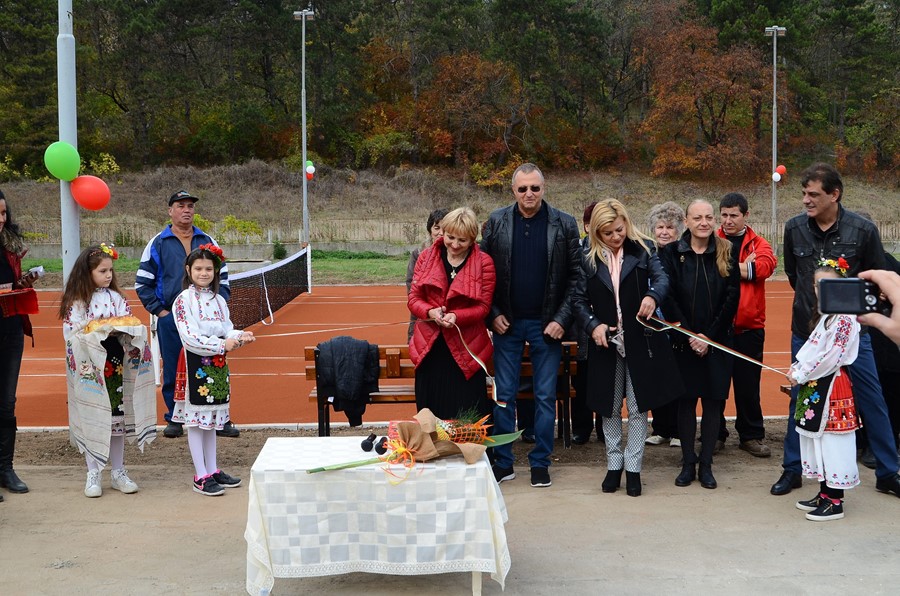 След официалното откриване на обекта на стойност 29 800 лв., се проведе демонстрационна среща по тенис на корт.