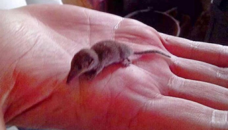 Боян Стоянов и Васил Аргиров попаднали на миниатюрното създание снощи. То е дълго едва 3,5 см, тежи 2-3 грама, има много особен вид – прилича едновременно и на мишка, и на слон, заради дългия си нос, наподобяващ хобот.