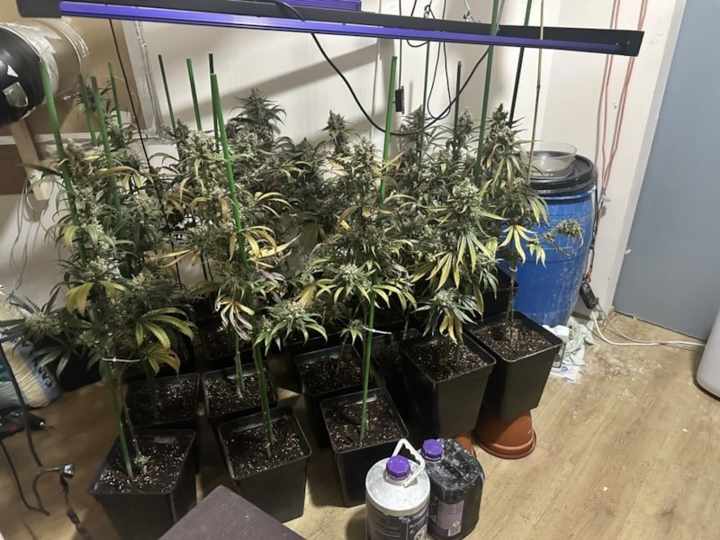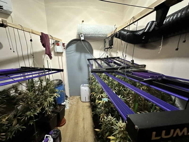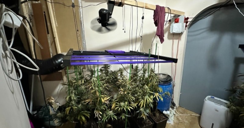 При претърсването на имота полицейските служители са открили 56 саксии с конопени растения, достигащи височина от около 120 сантиметра. Освен растенията, е иззето и специализирано оборудване, включващо филтри, вентилатори, кварцови лампи, както и специални торове за подхранване.