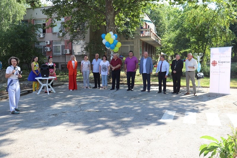 Многофункционална детска площадка в Дневния център за деца и/или младежи с увреждания „Милосърдие“ към Русенската католическа организация „Каритас“ бе открита днес.