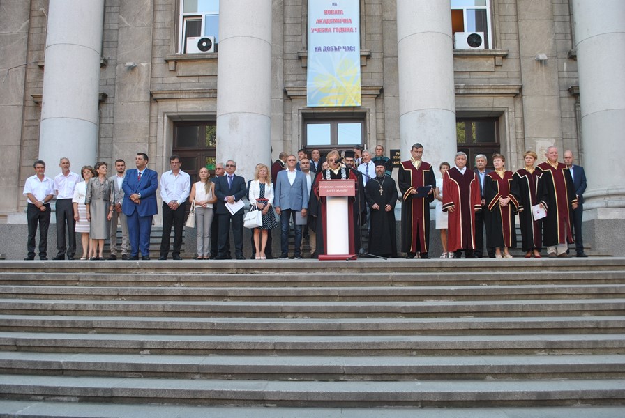 Церемонията започна с приветствие от ректора на РУ „Ангел Кънчев“ проф. Велизара Пенчева, която даде началото на новата академична година 2016-2017.