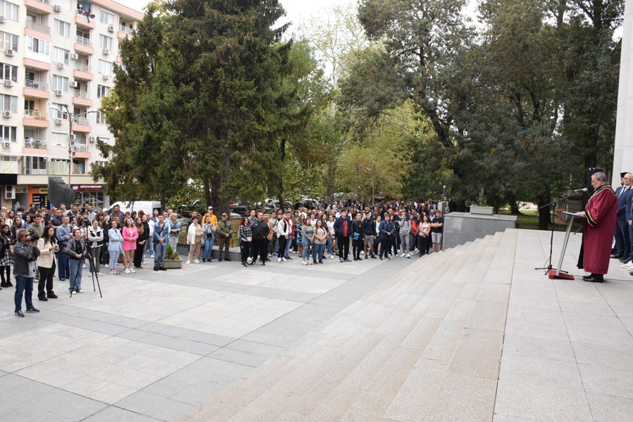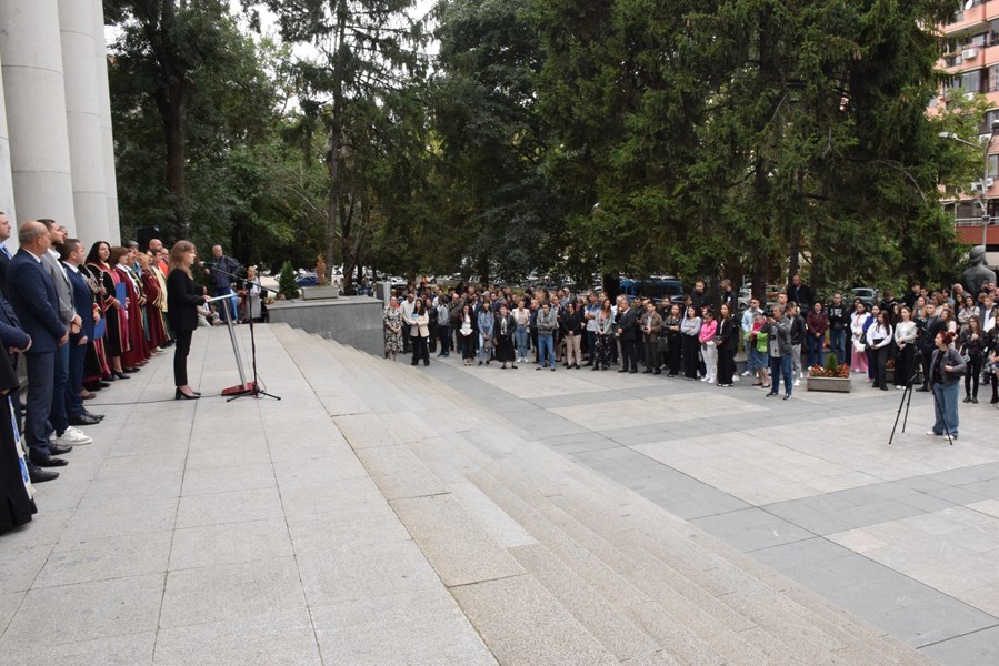 Кметът Пенчо Милков благодари на студентите за приноса им към динамичната атмосфера на града. "Убеден съм, че годините, прекарани в нашата Алма матер, ще бъдат силният старт, който ще ви изстреля нагоре по стълбичката на успеха," обърна се той към младежите.