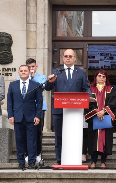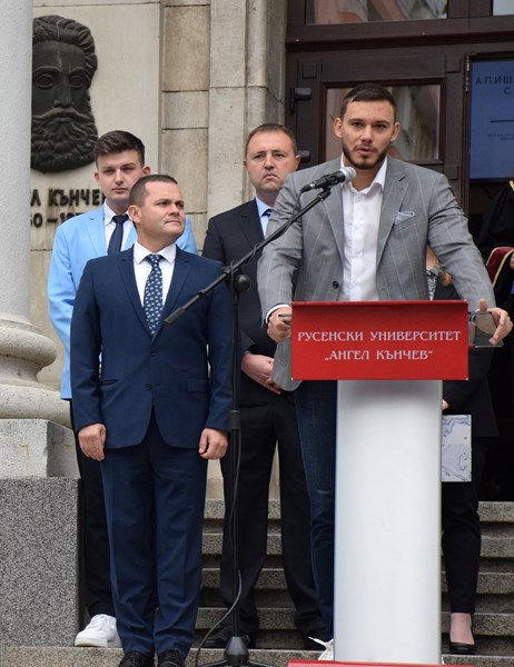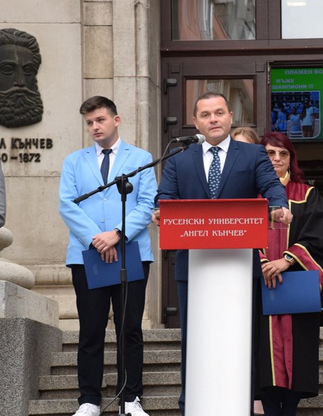 В своето слово професор Попов подчерта стратегическата ориентация на висшето училище към научни постижения и иновации, припомняйки неотдавнашното откриване на Център за върхови постижения и Научноизследователски комплекс. Той изтъкна високото качество на образованието в Русенския университет, посочвайки успешната реализация на много негови възпитаници в различни сфери на обществения живот.