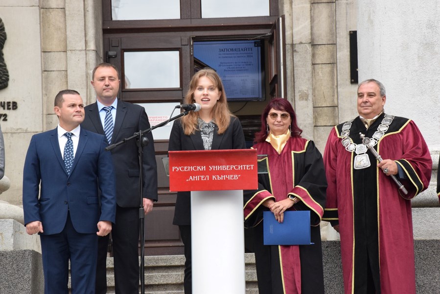 "Вие вече сте направили своя избор за образователен и професионален път. Русенският университет ще ви осигури всички условия този път да бъде успешен и значим," заяви ректорът, насърчавайки студентите да преследват мечтите си.