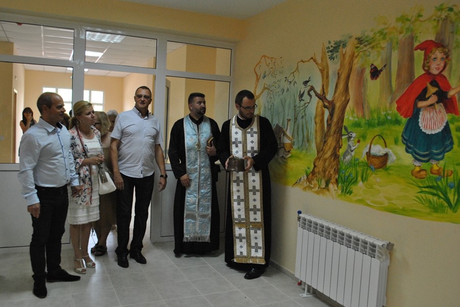 Празничен водосвет за откриването на новата сграда отслужи отец Георги. Лентата прерязаха народният представител г-н Пламен Нунев, кметът на Община Русе г-н Пламен Стоилов и директорът на детската градина г-жа Теменужка Тодорова.