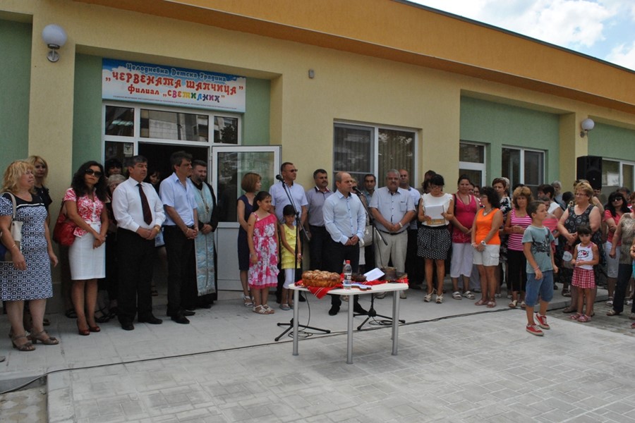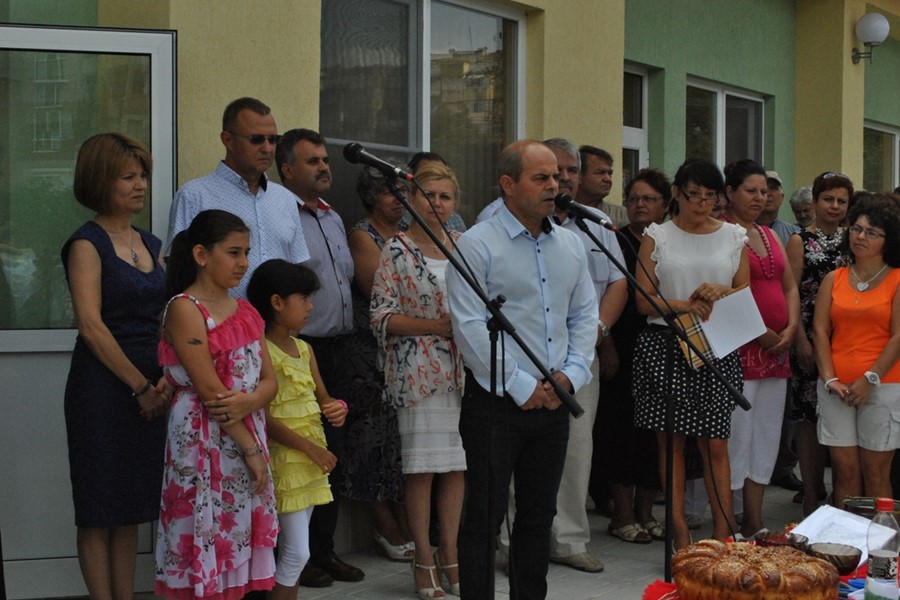 Официалното откриване на новопостроената детска градина по проект „СВЕТИЛНИК – социално включване чрез единодействие на терапевти и институции за леснодостъпни, нови, интегрирани консултации“ се състоя днес в кв. „Чародейка-юг“.
