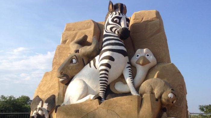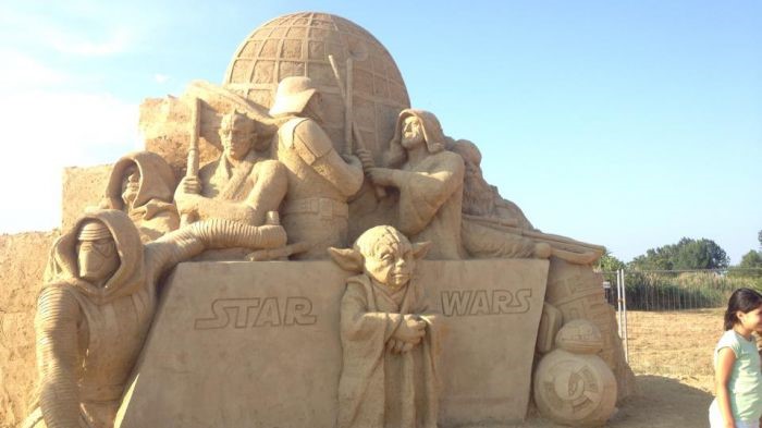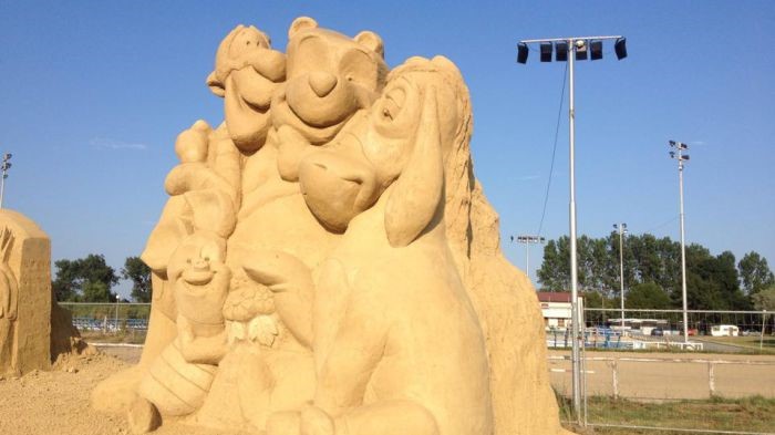 Сред тях са Батман, Тарзан, Костенурките нинджа, пингвините от Мадагаскар, Рапунцел, Мечо Пух, Малкият принц, герои от филмите "Междузвездни войни" , "Зоотрополис", "Хотел Трансилвания", "Ледена епоха", "Замръзналото кралство". 9 Към миналогодишните 5 000 тона пясък са добавени още близо 500 тона.