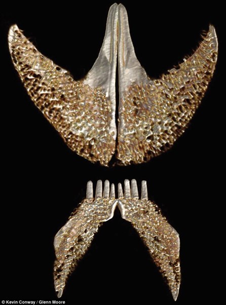 Съхраняваните в музея на Западна Австралия в Уелшпул два спесимена са уловени в Южна Австралия през 1977 г. Учените са ги изследвали с компютърен томограф. Така са установили, че зъбите са от 1800 до 2300 - 10 пъти повече, отколкото на другите риби прилепала.